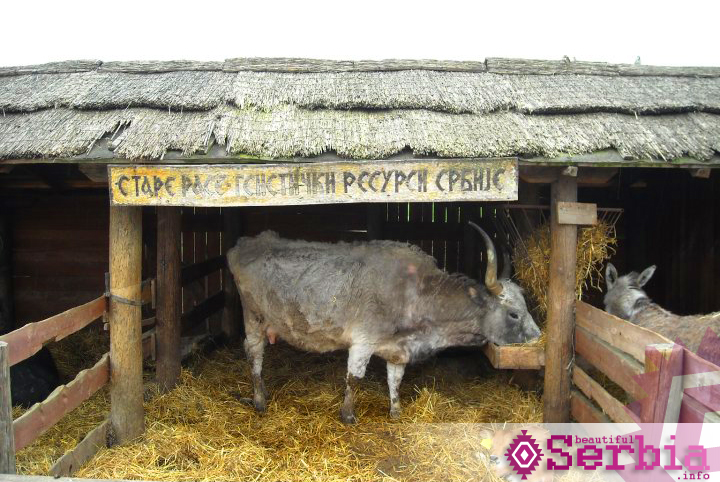 Uz prilaznu stazu koja vodi sa parkinga smešten je malecki zoološki vrt (ili demonstraciona farma), sa natpisom „stare rase – genetički resursi Srbije„. Tu su vitoroga koza, golovrata kokoš, čuvena mangulica – sremska crna lasa (ili narodski: svinjče), podolsko goveče, ogromnih rogova – čiji raspon ide i do 1,5 metra, domaći brdski konj, balkanski magarac (lično) i buša (koja mora da je u bliskim rodbinskim vezama sa afričkim bivolima iz emisija sa „Animal Planet“ i „National Geographic“ kanala – isti onaj preteći, blagoteleći pogled!).